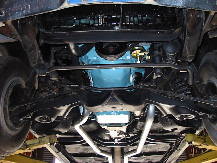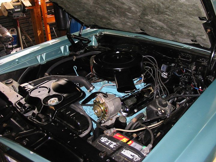 ENGINE & COMPARTMENT- Original 389 V8 is a fresh rebuild. No details or expense spared in the engine compartment. Includes: new correct chrome valve covers, new 4-core radiator and shroud, factory rebuilt Carter 4-barrel carburetor, new engine wiring harness, new inner splash guards, new alternator and regulator, inner hood insulation was replaced with original unit, new "GTO Sound" complete exhaust system, Pertronics pointless ignition, new wiper motor, battary hold-down, compartment painted with catalyzed black enamel. VERY NICE!!