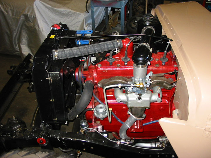 ENGINE & COMPARTMENT- Original flathead 4 cylinder rebuilt. New carburator, exhaust manifold, radiator, and exhaust. Rebuilt starter. 12 volt system conversion. Pertronics pointless ignition. Highly detailed and clean. VERY NICE!!