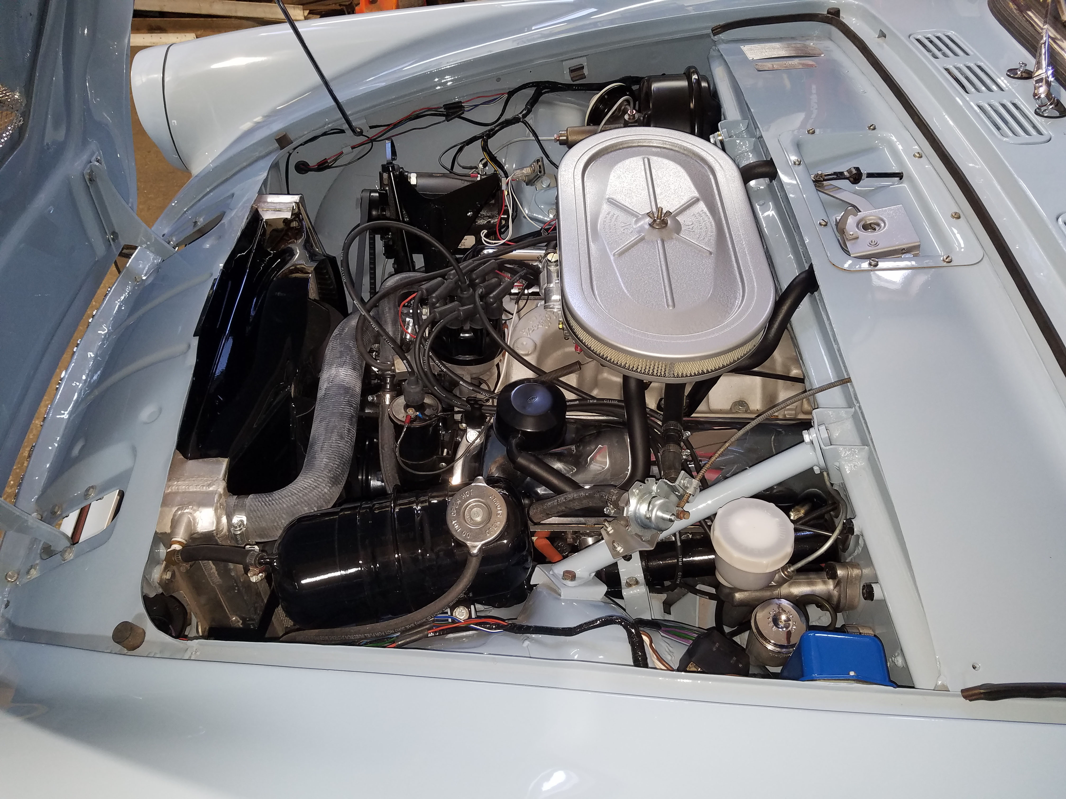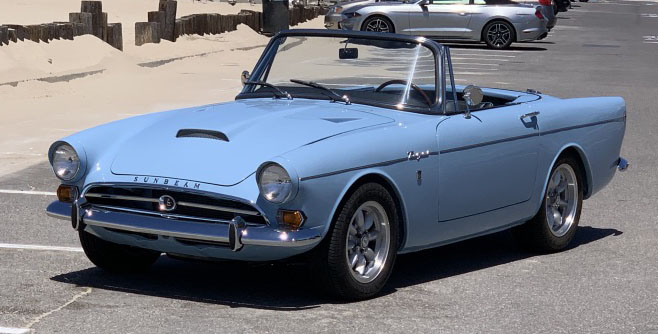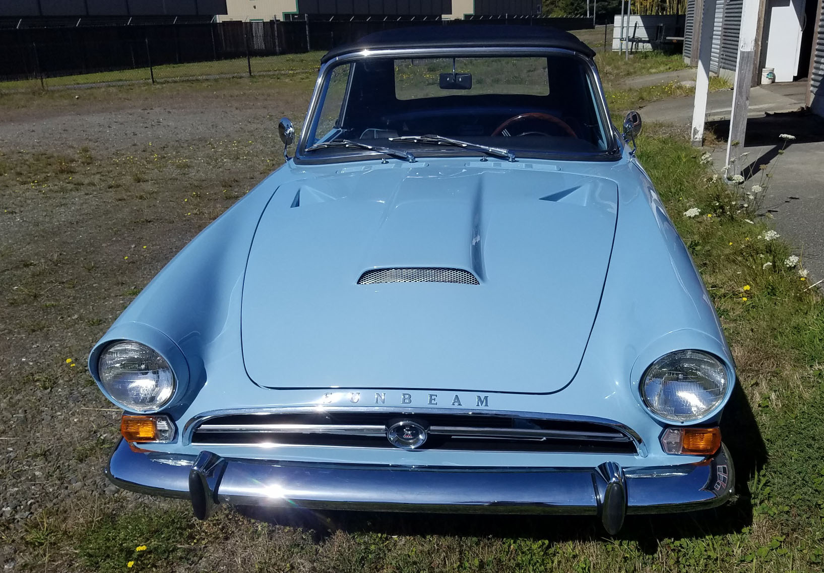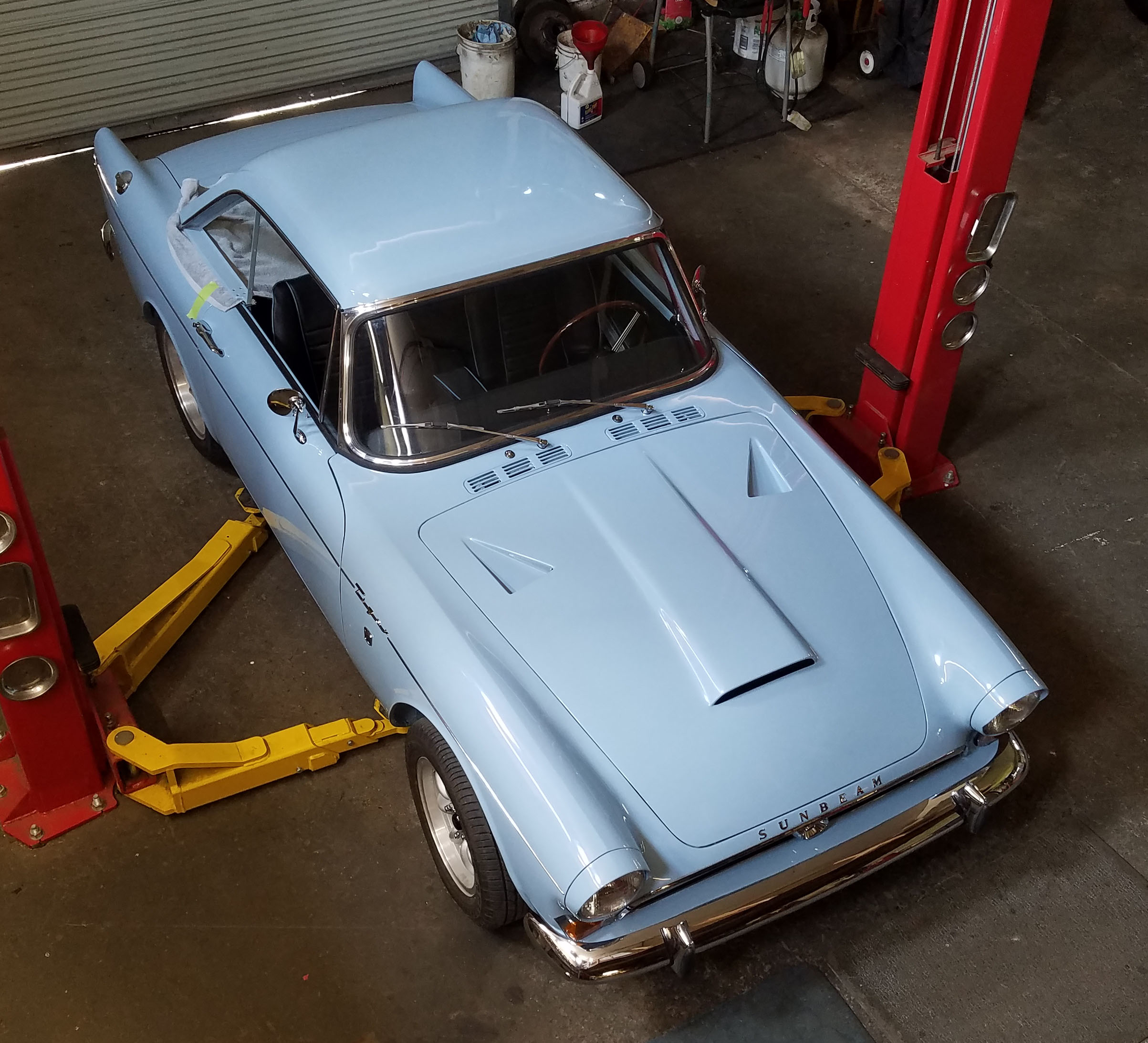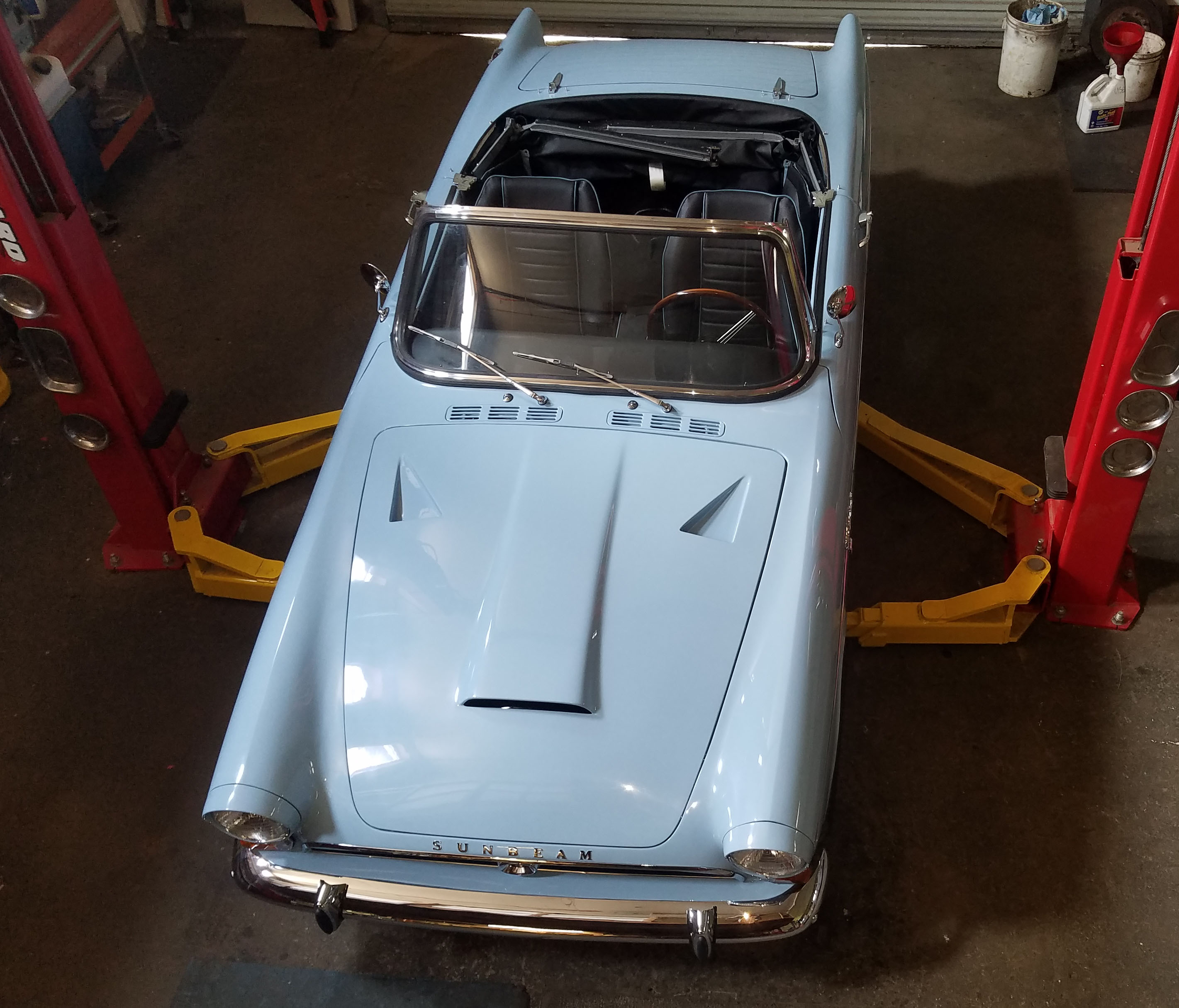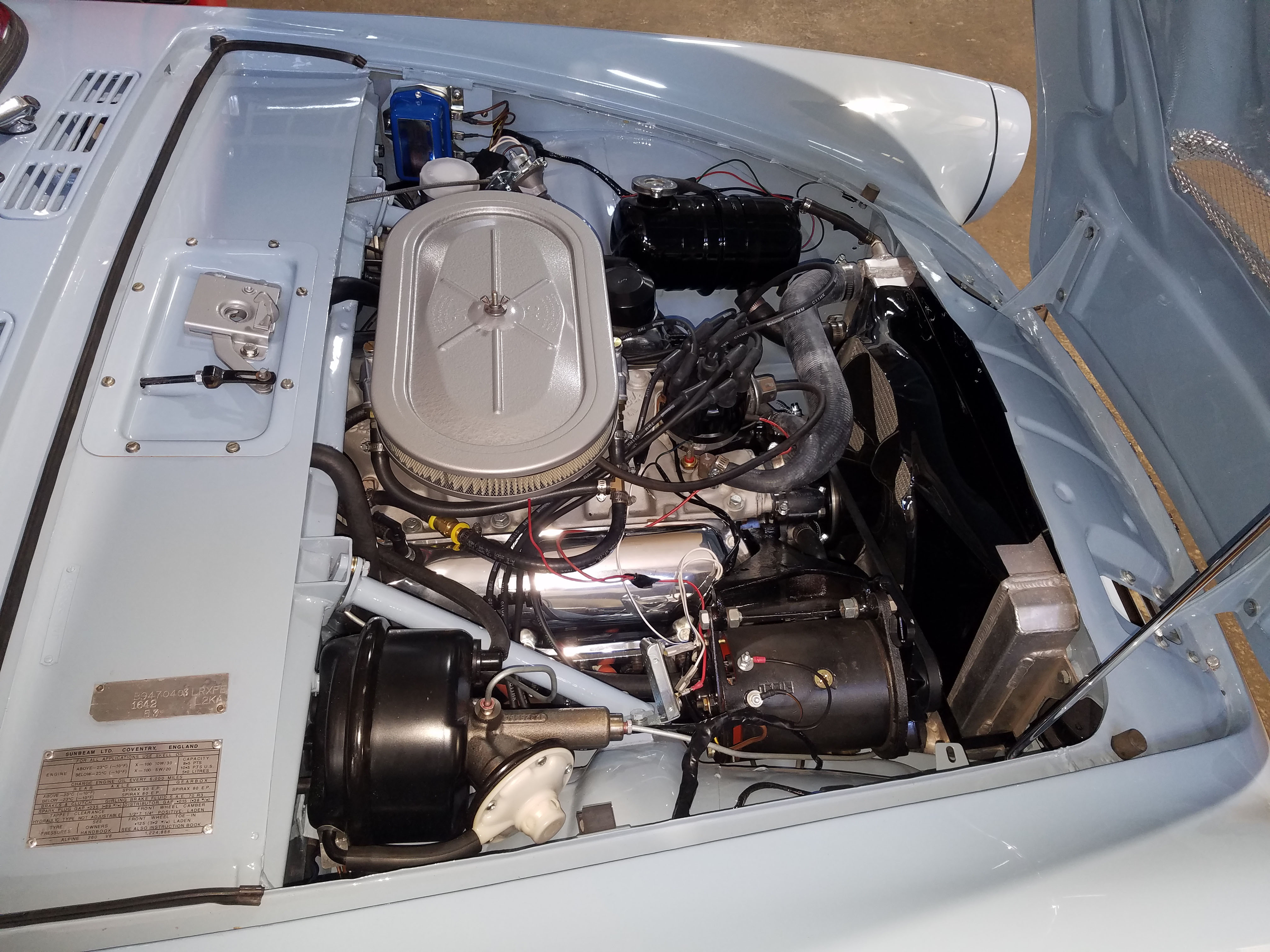 1964 Sunbeam Tiger Mk1. Vin# B9470403LRXFE. TAC inspected by STOA. TAC#239. Rotisserie Factory-Original Prepared Restoration. Rust-free Sunbeam Tiger with matching transmission and rear differential numbers from the factory (engine upgraded with authentic 1965 Ford HiPo 289 V8). Minor Upgrades include aluminum radiator with 6-blade fan, Replacement Lockheed Brake Booster, Ford Motorsport oil filter angle adapter, "Traction Master" Bolt-on Traction Bars, Pertronix pointless ignition system (lurks hidden, retains original appearance), and the LAT Edelbrock 4FB intake manifold with 4-barrel Holley 570 CFM Carburetor and ceramic coated headers. 289 HiPo Nostalgic Crane hydraulic tappet Performance camshaft matches original Ford HiPo V8 specification but doesn't require the regular adjustments required by a solid tappet camshaft. Engine Cooling upgrade installed retaining original fan shroud. All original Tiger parts cleaned and archived. Included in the restoration were the installation of shifter activated Sparto reverse lights, original presentation radio with upgraded modern internals, Smith clock and volt meter and fresh air venting.