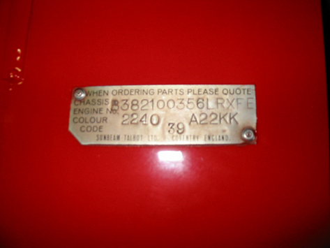 VIN# and JAL Tag (fastened with original rivits)