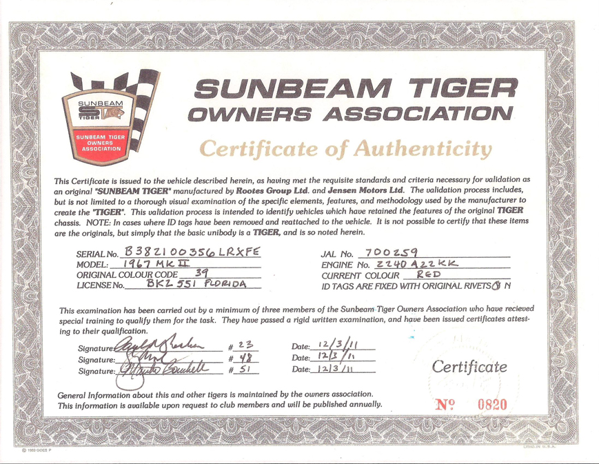 Tiger Authentication Certificate